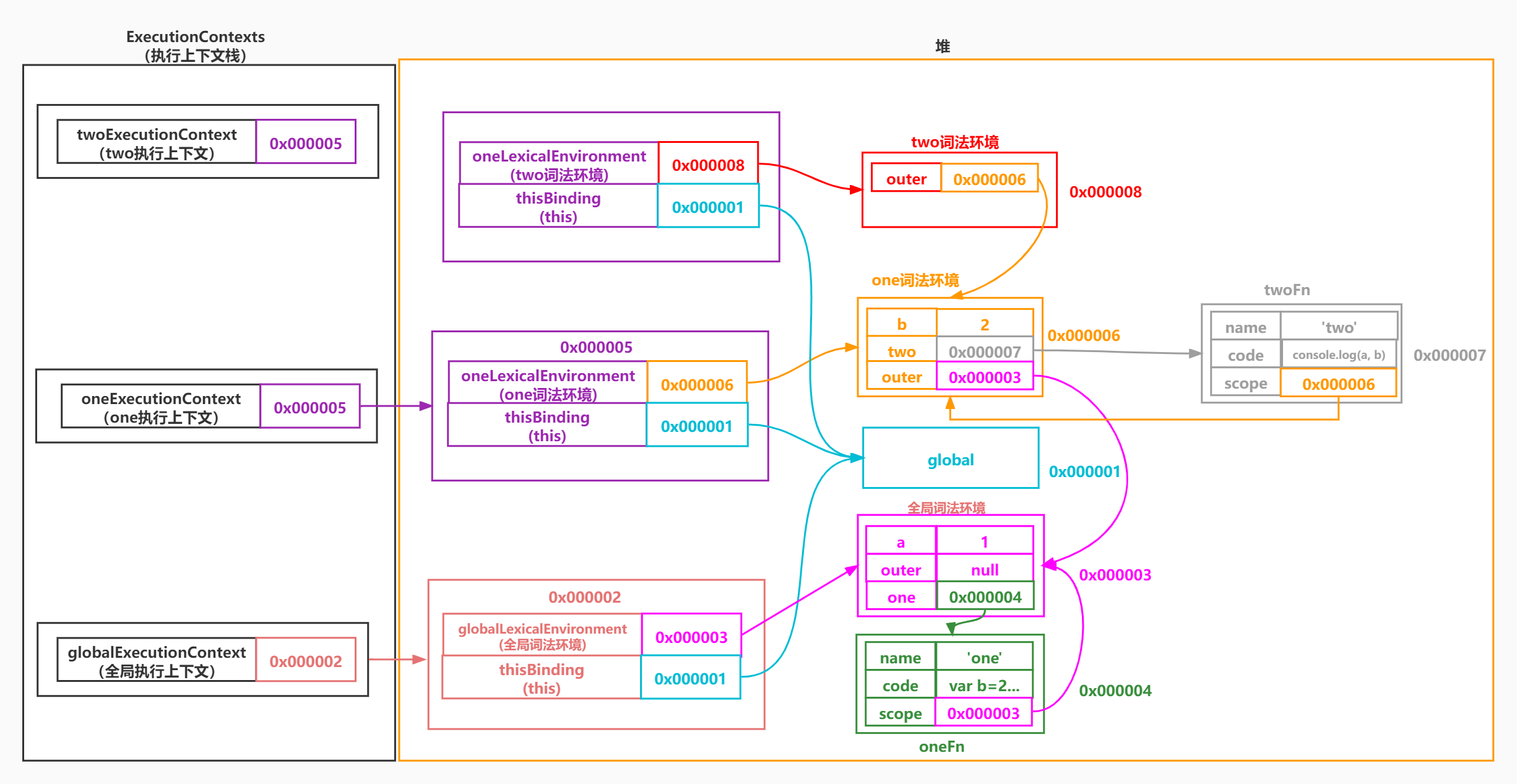 +let twoExecutionContext = new ExecutionContext(twoVariableEnvironment, global);