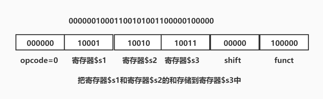 把寄存器$s1和寄存器$2的和存储到$s3中 |